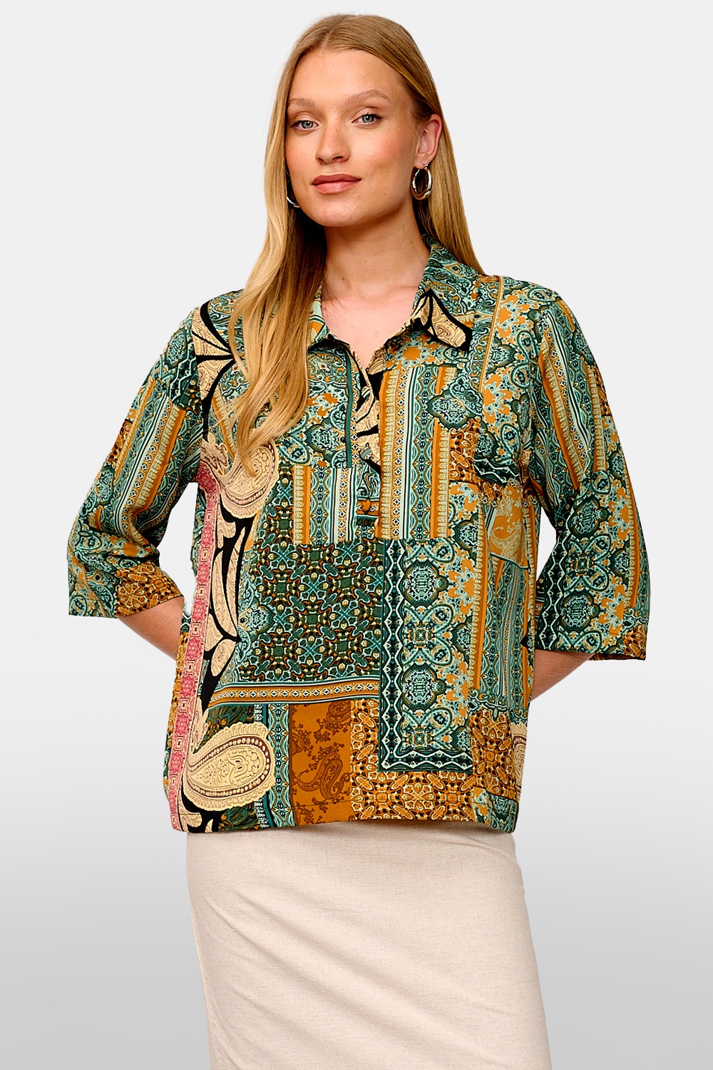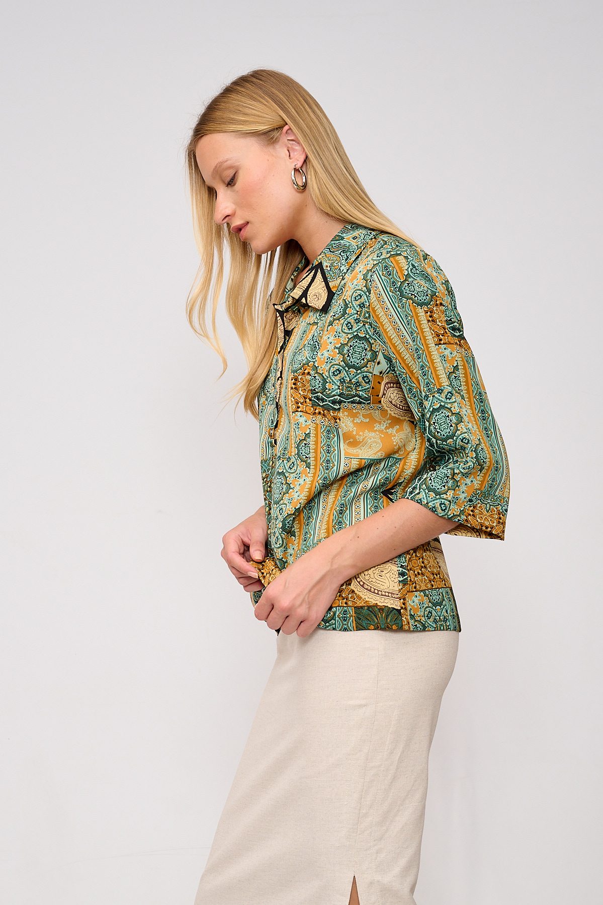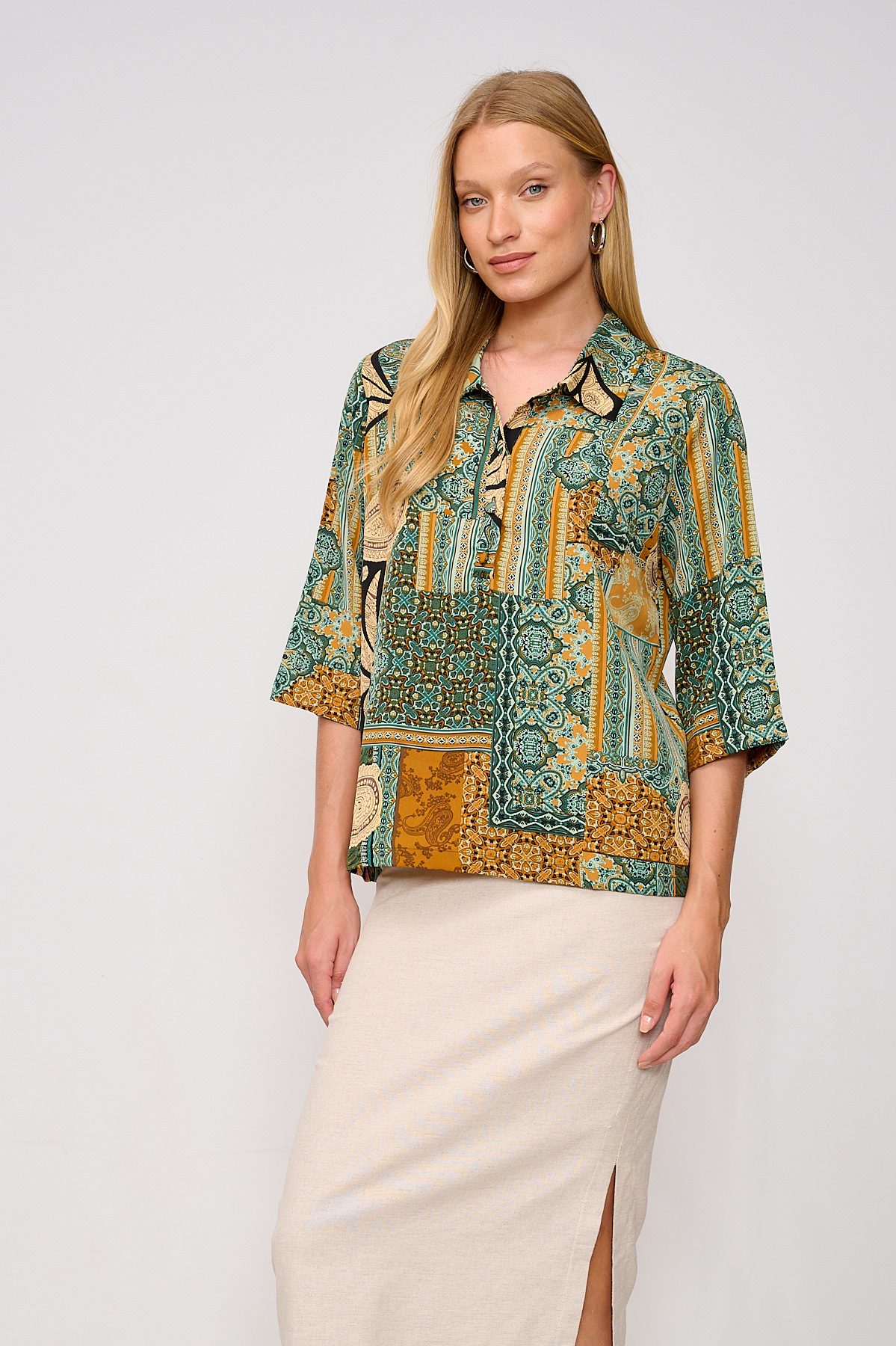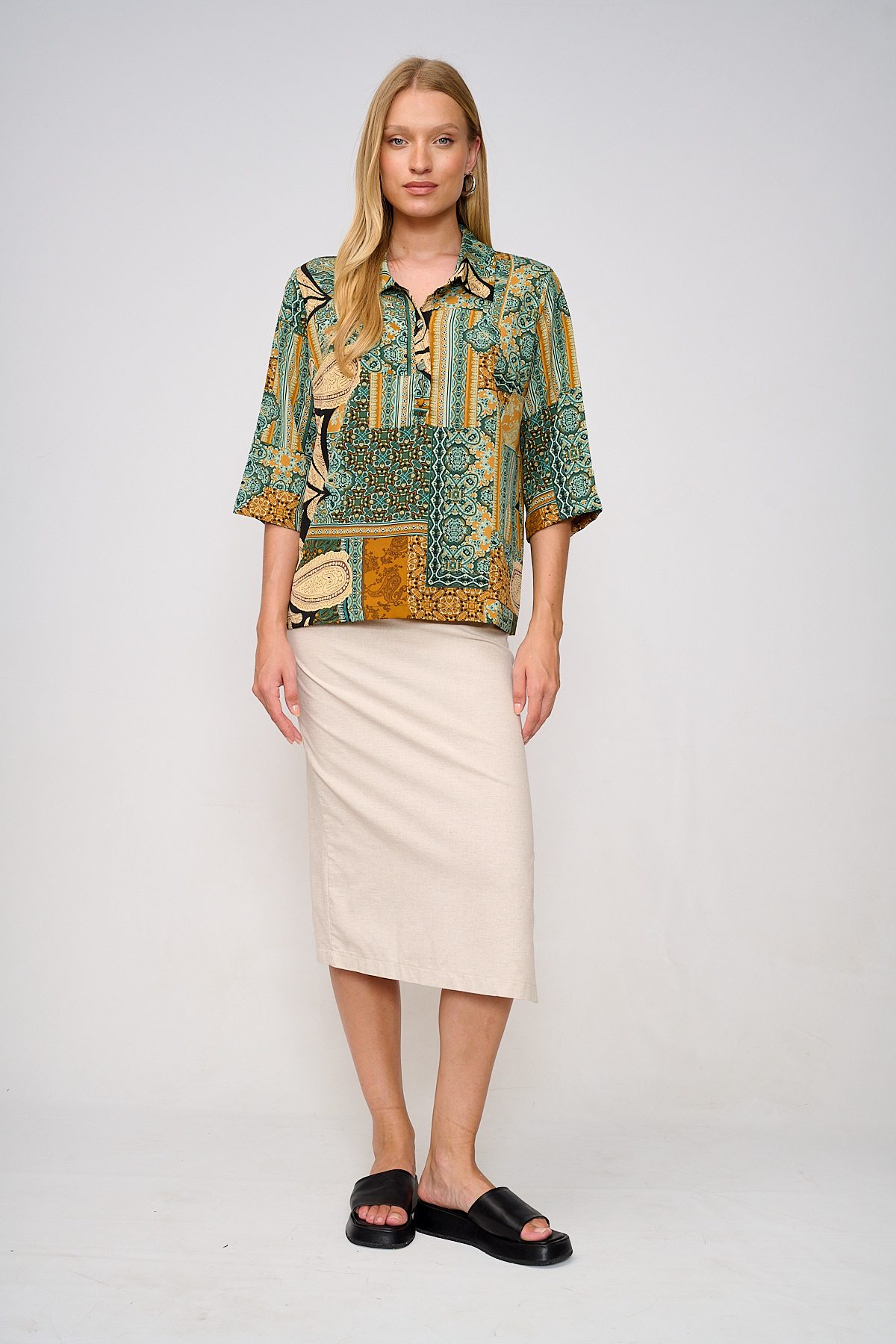 חולצה מכופתרת בחלקה העליון, קלילה ויושבת לצידי הגוף